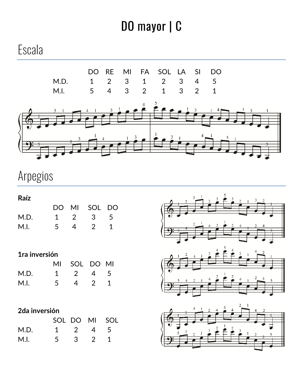 Arpegios en tres inversiones para cada tonalidad.