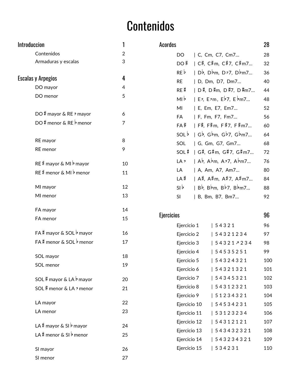 Escalas, Arpegios, Acordes, Ejercicios