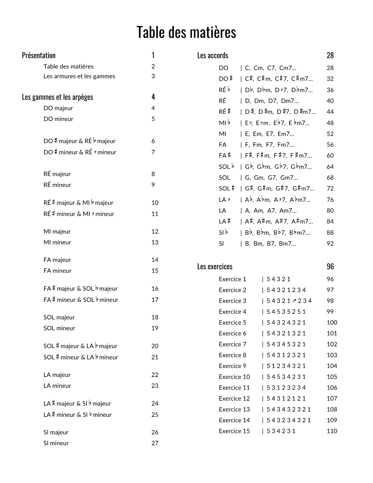 Guide complet : gammes, arpèges, accords et exercices pour le piano.