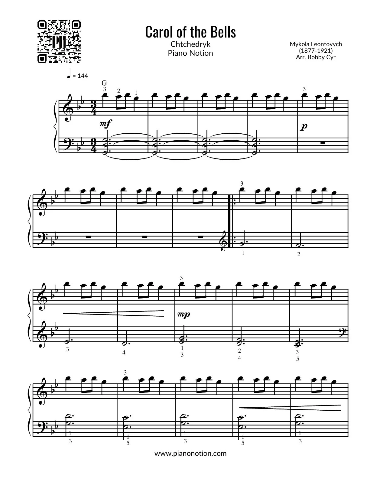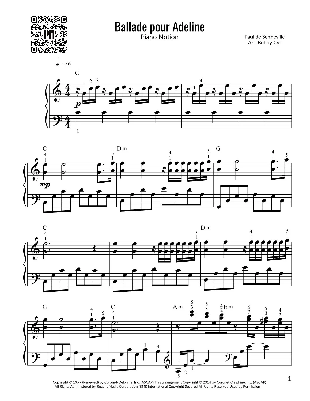各ピアノ楽譜にはQRコードが付いており、対応するスコアのビデオチュートリアルにアクセスできます。
